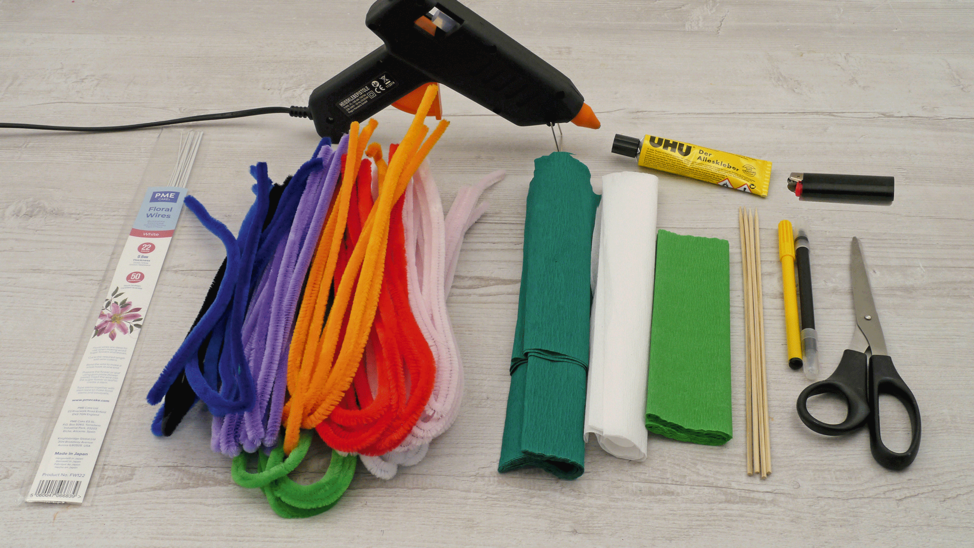 Bunte Chenilledraht-Blumen – ein Strauß voller Freude, der immer blüht.