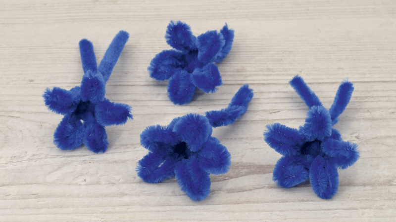 Biege die vier Enden der Chenilledrähte fächerförmig auseinander, sodass sie gleichmäßig nach außen zeigen.