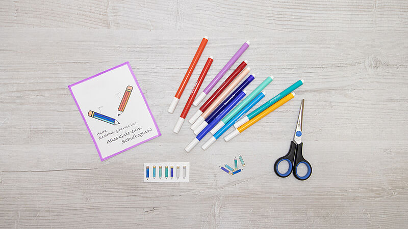 Drucke im ersten Schritt die Vorlage auf dickem Papier aus, male die Motive aus und schneide sie sauber zu.