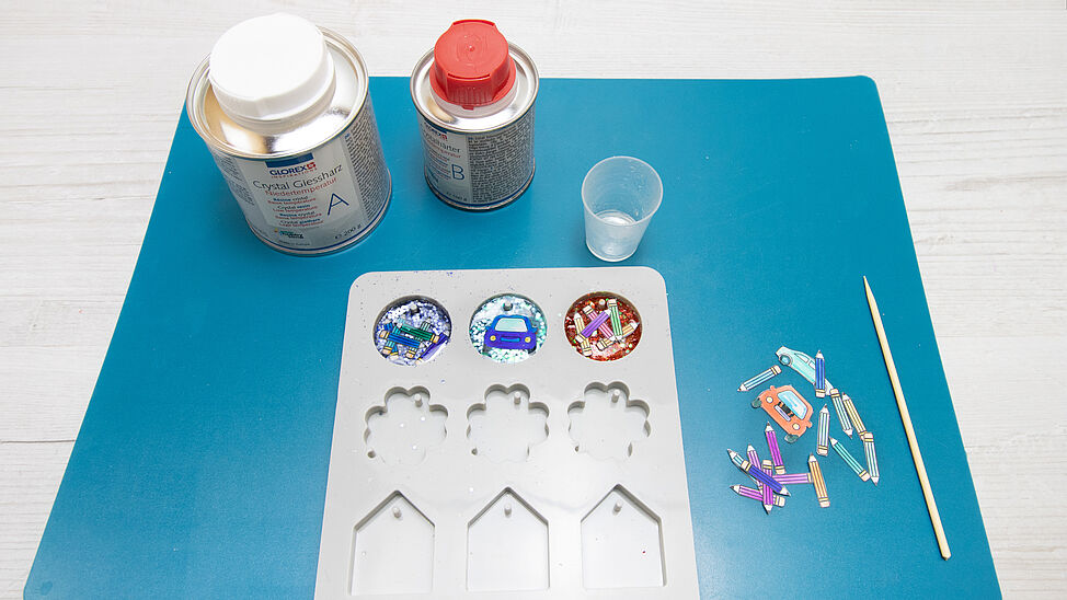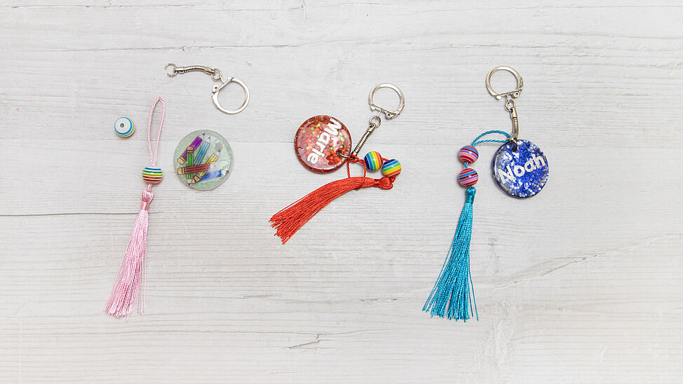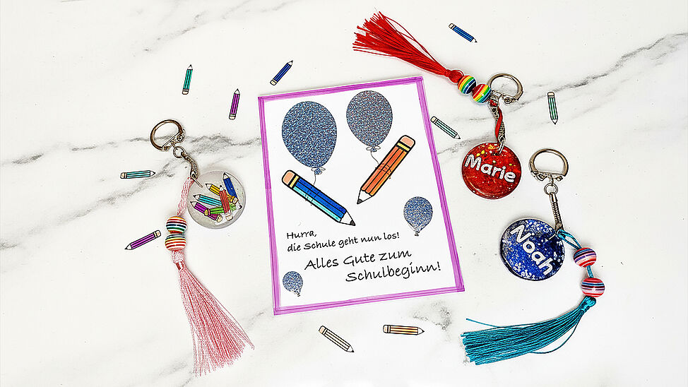 Hurra, bald geht die Schule los! Mit diesen individuellen Gießharz-Schlüsselanhängern gestaltest du glitzernde Unikate.