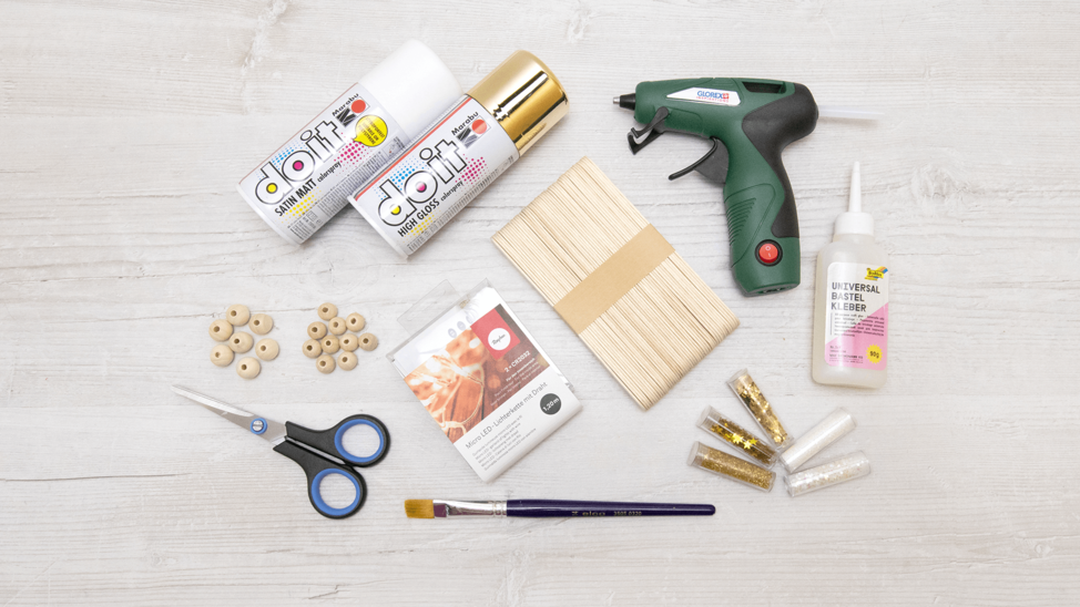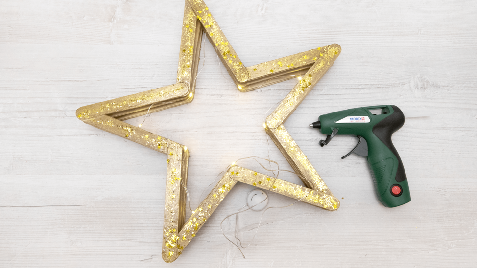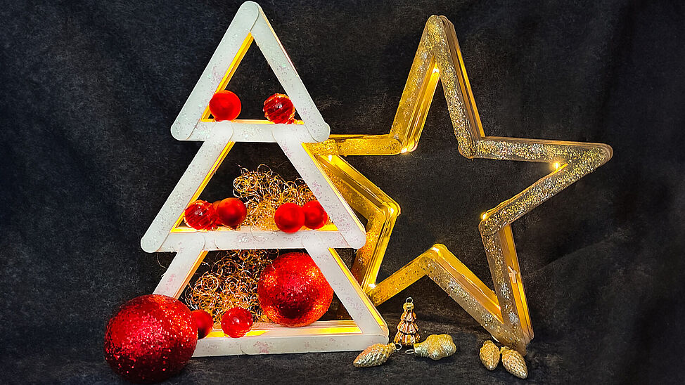 Mit nur wenigen Materialien entstehen aus einfachen Holzstäbchen funkelnde Highlights, die in jedem Zuhause für weihnachtliche Stimmung sorgen.