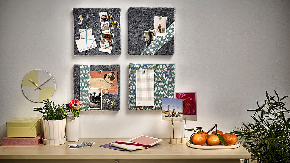Wenn Ordnung dekorativ wird: Aus Filz, Stoff und Bändern entsteht ein schöner Platz für Fotos und Notizen.