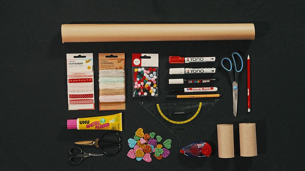 Wickle das Papier um die Klopapierrolle und verschließe die Naht mit dem Kleberoller.