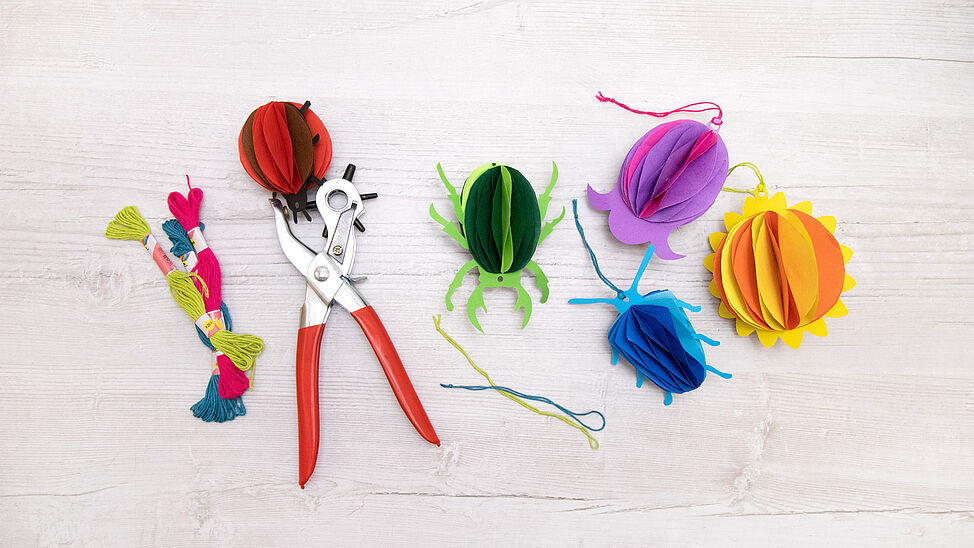 Diese leichten Papieranhänger bringen Farbe, Freude und Bewegung in jeden Raum. Ob als Fensterdeko, Mobile, Geschenk-Anhänger oder bunte Partydekoration – die Wabenoptik verleiht ihnen eine besondere Dreidimensionalität. Mit wenigen Materialien und etwas Faltgeschick entstehen farbenfrohe Käfer, Blumen oder Sonnen, die garantiert gute Laune verbreiten.