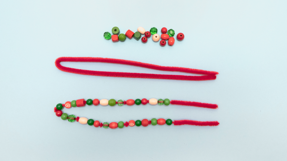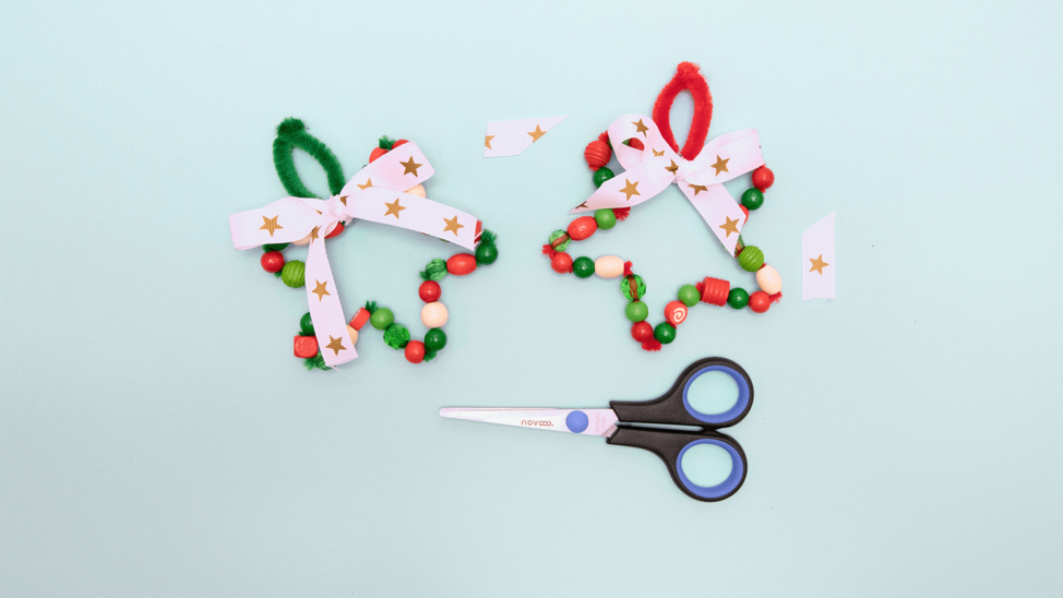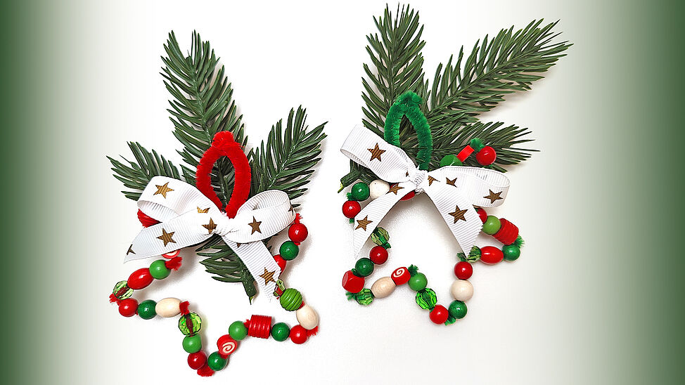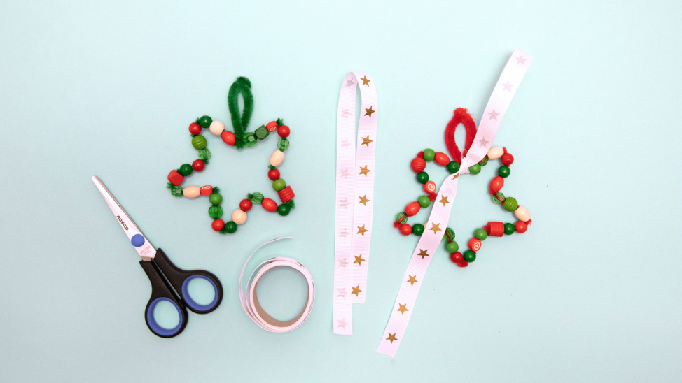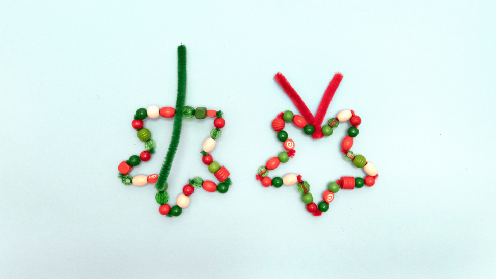 Rasch gemacht, super für kleine Hände und ohne Kleber: Mit Chenilledraht und bunten Perlen entstehen fröhliche Weihnachtsanhänger. Perfekt für den Christbaum oder als Geschenkdeko.