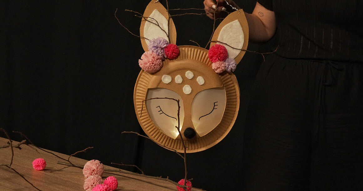 3. In den Pappteller für den Hinterkopf des Rehs schneidest du oben eine Aussparung für das Licht.